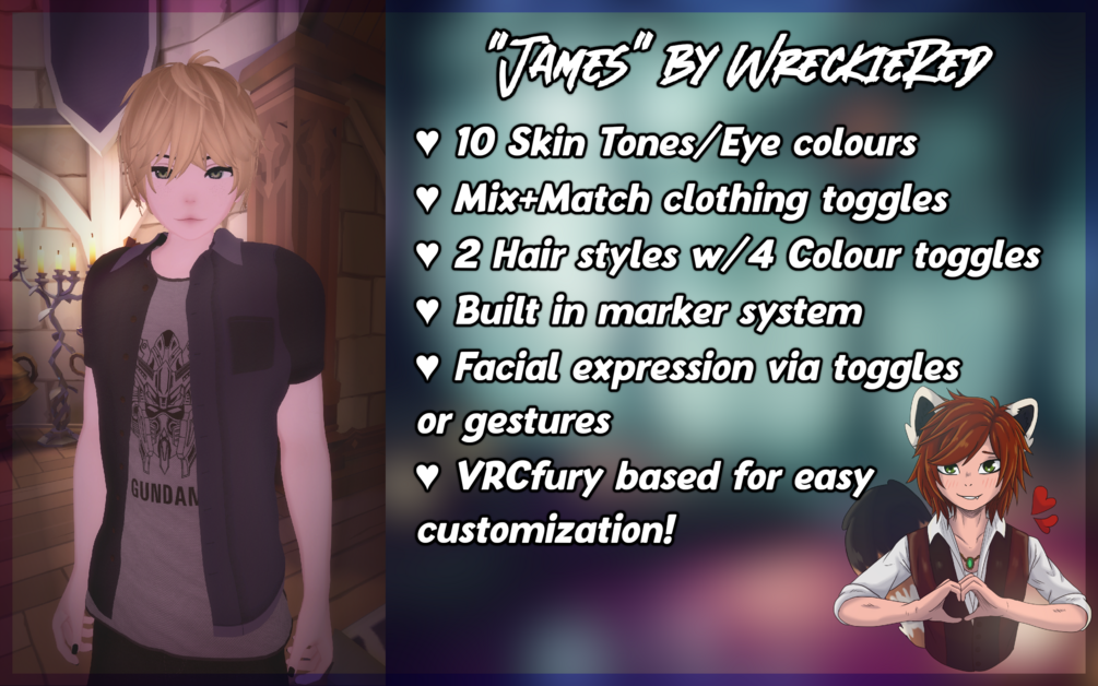 Update 14/10/24: Added a V2 unity package. Weight painting, Material upgrades, and Model updated fixing various things. Quest version and Optomized version not yet redone.